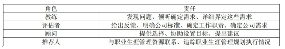 3 、人力資源部門的責(zé)任:人力資源部門應(yīng)提供與職業(yè)發(fā)展有關(guān)的培訓(xùn)與開發(fā)機(jī)會(huì)的信息或建議,同時(shí)還應(yīng)該提供專業(yè)服務(wù)。